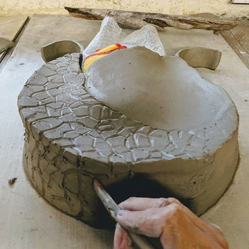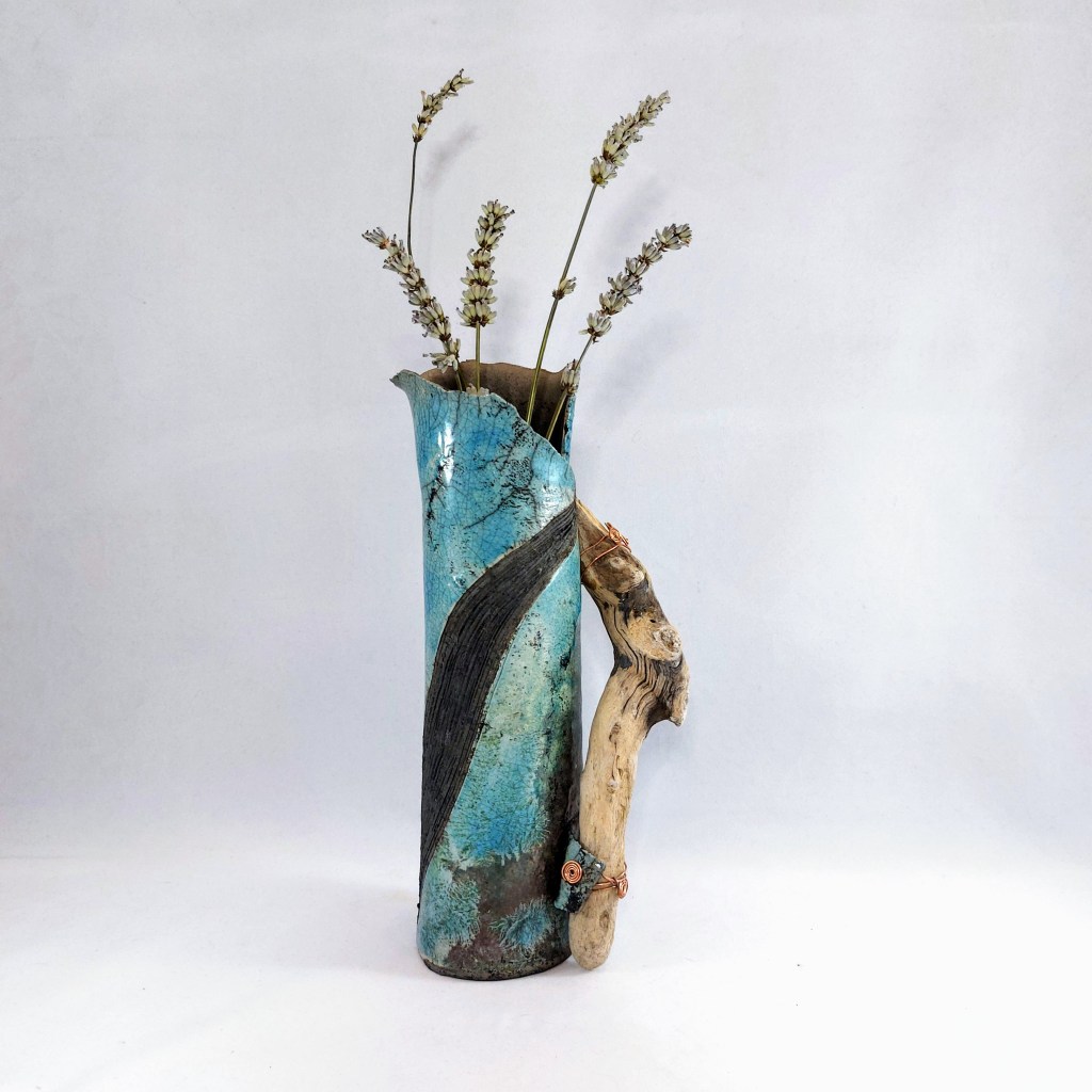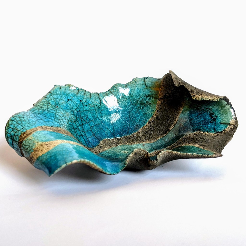 Raku wave dishRaku wave clockWoodland clockPlaying with fire!Featured on ‘The Great Pottery Throwdown’Creating!Raku fired wave dishThe magic of RakuLarge woodland vaseSeashore dishLarge seashore vaseHorse hair fired bowlHome studio in YorkshireRuku vase with driftwood handleLarge woodland dishRaku fireCreating textureHorse hair dishCarving into the clay